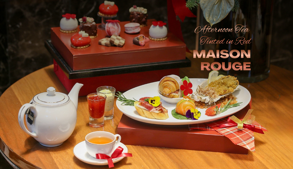 赤の彩りに包まれた Maison Rouge アフタヌーンティー は、心満たされる午後のロマンを映し出します。